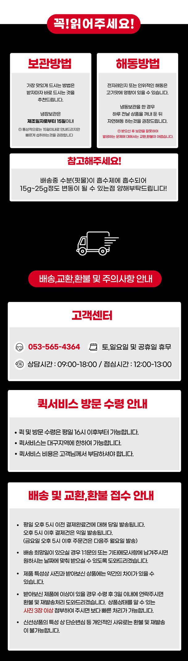 · 상품 불량 사유와 사진을 남겨 주시면 빠른 처리가 가능합니다.
